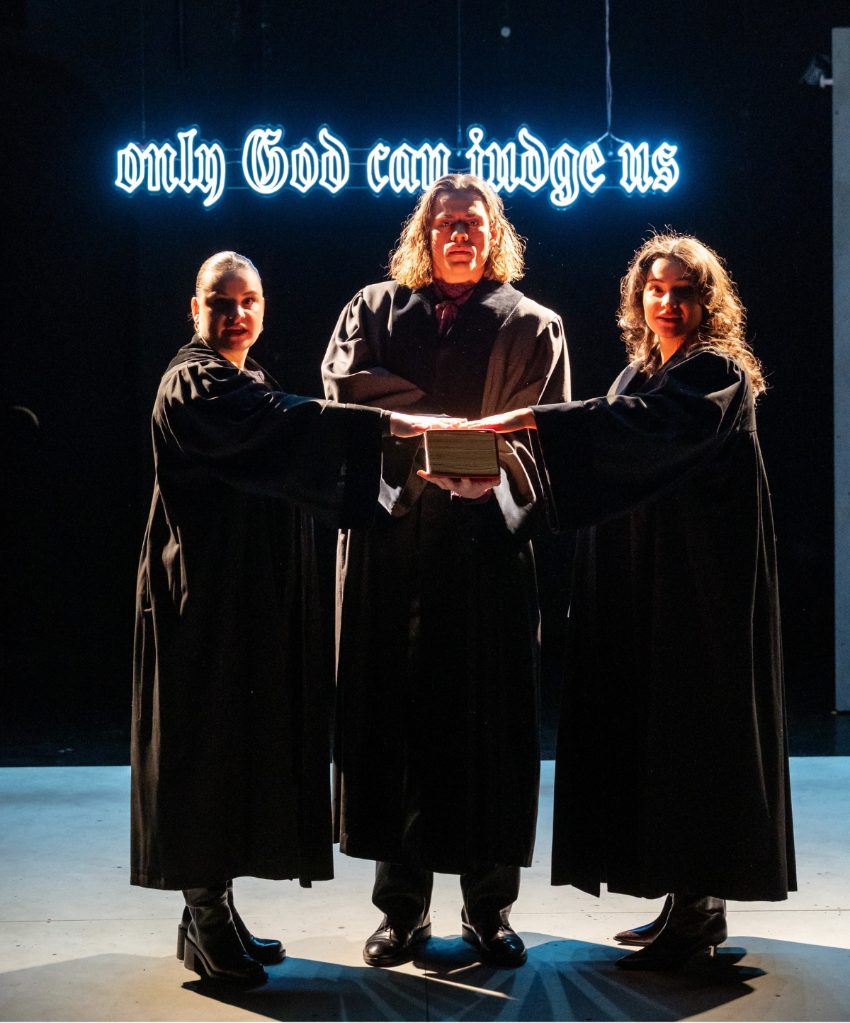 Susanne Frieling, geboren und aufgewachsen im Allgäu, studierte Theaterwissenschaft und Soziologie an der LMU München sowie Theaterpädagogik an der hmt Rostock. Während ihres Studiums war sie Teil des Performancekollektivs Maria Gyrlzs sowie des Theaterkollektivs Stiller. Das theatrale Zuhause der jungen Regisseurin sind Stückentwicklungen. Hierbei bedient sie sich gerne bekannter Literaturvorlagen, die sie neu kontextualisiert, collagiert und in zeitgenössische Zusammenhänge setzt. Die Stückentwicklung »Baby don’t hurt me«, welche auf Nabokovs Roman »Lolita« basiert, wurde 2022 zum 39. Heidelberger Stückemarkt eingeladen. In Kooperation mit dem Theater Hora durfte ihre Inszenierung »Karl!« im September 2022 die Spielzeit am Theater Konstanz eröffnen. Weitere Arbeiten sind und waren am Schauspiel Frankfurt, Theater Baden-Baden, Theaterhaus Jena sowie Staatstheater Wiesbaden zu sehen. Mit dem Stück »Im Namen des Volkes« stellt sie sich nun dem Publikum in Göttingen vor.