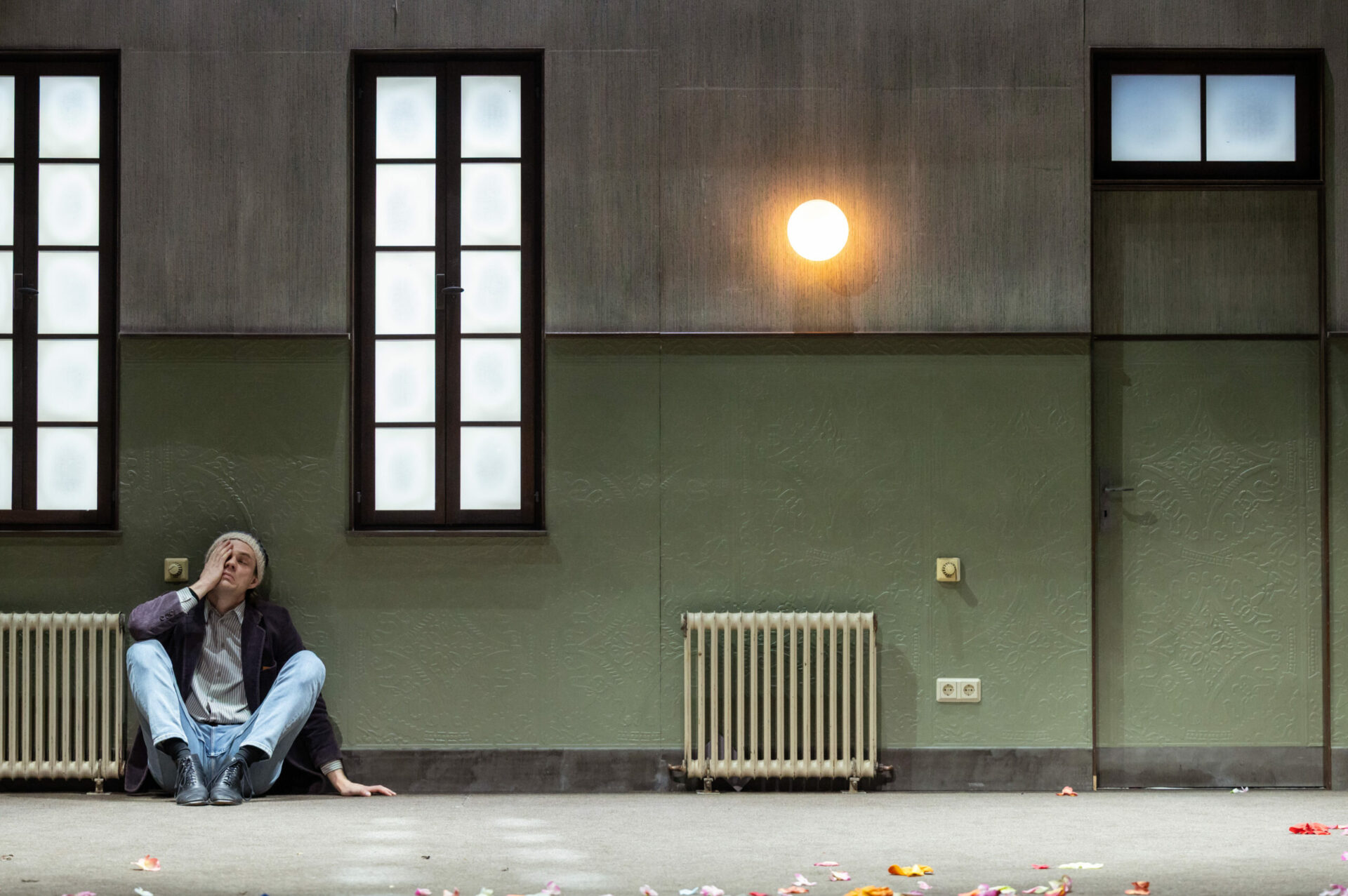 Die Bühne ist zur Amtsstube aus den 1980er-Jahren geworden. Durch Nebel treten zehn Tote in das Büro, welches mit mehren Tischen, Stühlen, Videoregalen und einer Schreibmaschine ausgestattet ist. Die Verblichenen stehen im Vorzimmer zur Ewigkeit ihren sechs Lotsen gegenüber und bekommen ihre Aufgabe: Jede*r Verstorbene hat eine Woche Zeit, um sich eine Erinnerung aus seinem Leben auszusuchen, die besonders bedeutsam, wertvoll und glücklich war. Mit dieser Erinnerung geht es dann weiter in die Ewigkeit.