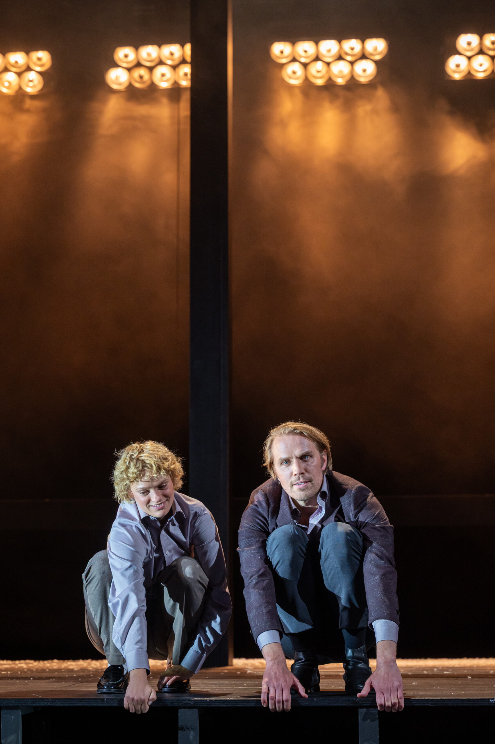Sollte eine Lebenslüge, eine Schuld geheim gehalten werden, um den Familienfrieden aufrecht zu halten? Die Familie Ekdal, bestehend aus Hjalmar (Bastian Dulisch), seiner Frau Gina (Rebecca Klingenberg), ihrer Tochter Hedvig (Lou von Gündell) und Hjalmars Vater Ekdal (Gerd Zinck) führt ein bescheidenes, aber augenscheinlich glückliches Leben. Im Dachboden liegt eine halbverletzte Wildente, die Ekdal geschossen hat. Sie ist in Stones Fassung nicht mehr auf der Bühne, sondern steht metaphorisch für den Zwischenraum zwischen Illusion und Wahrheit, Leben und Tod. Nach Jahren besucht Hjalmars Jugendfreund Gregers (Gabriel von Berlepsch) seinen Vater Werle (Florian Eppinger), der erneut heiraten möchte. Werle nutzt diese Gelegenheit, um seinen Sohn zu fragen, ob er die Firma übernehmen möchte, da er bald er erblinden wird. Doch der Sohn lehnt ab. Gregers besucht später die Familie Ekdal und bringt deren Familienglück ins Wanken. Es beginnt ein Albtraum, indem die Frage nach der Schuld gestellt wird. Selbst die Religion, selbst die Liebe kann diese Lebenslüge nicht mehr auffangen. Wer hat Schuld? Die Mutter, die jahrelang geschwiegen hat, dass Werle der biologische Vater von Hedvig ist? Gregers, der die der heilen Familie zerstört, indem er die Wahrheit ausplaudert? Ibsen sowie Stone lassen offen, wer Schuld an dieser Tragödie hat. Stattdessen lassen sie uns selbst fragen, wie wir handeln würden.