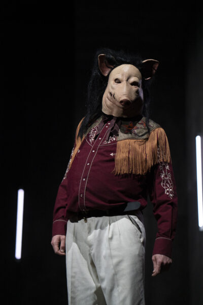 Ich würde sogar sagen, dass ich die Welten nicht bloß sprachlich angeglichen habe, sondern dass das Derbe den Schauplatz gewechselt hat. Die Sprache im Haus der Macht ist völlig entgrenzt und verroht, während man in der Kneipe durchaus im Versmaß zu sprechen in der Lage ist und ab und an ein kleiner Reim daherkommt. Die landläufige Meinung über die Verrohung von Sprache und Politik steht hier Kopf, weil ich die Auffassung nicht teile, dass extremistische, verrohte Politik den Leuten bloß nach dem Mund reden und nur aussprechen würde, was hinter vorgehaltener Hand ohnehin gesagt wird. Ich glaube, das Gegenteil ist vielmehr der Fall: Verrohte Politik streut ihre eigene, programmatische Rohheit in die Bevölkerung hinein und zieht die Sprache der Verächtlichmachung in den Leuten erst heran. Ich zeige in meinem Stück ein autokratisches System, das auf diese Weise an die Macht gelangt ist und sich mit noch weit invasiveren Mitteln an der Macht hält.